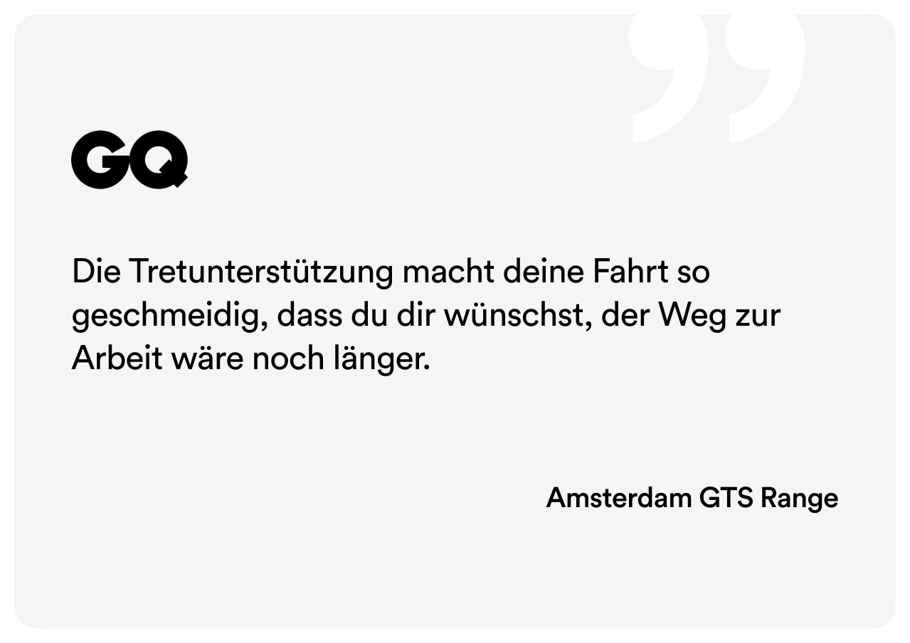 Das Amsterdam GTS verfügt über eine extra starke Pulverbeschichtung, robuste Aluminium-Schutzbleche und zusätzlich stoßabsorbierende, pannensichere Schwalbe G-One Reifen. Alles am Amsterdam GTS steht für Nachhaltigkeit, Komfort und ist für den täglichen Gebrauch in und um die Stadt herum konzipiert.